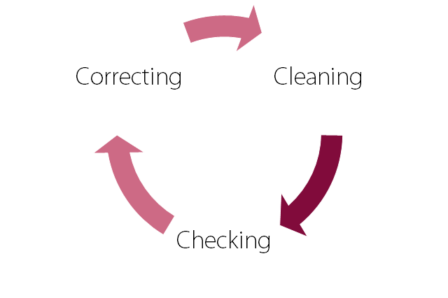 Shine – With the clutter gone and the storage organized, the next step is to properly and thoroughly clean the work area every day. This step is critical as a way of sustaining the improvements begun in the Sort and Set phases. All storage areas, machines, equipment, tools and work surfaces must be cleaned and checked regularly. Employees will feel more comfortable in this clean and uncluttered environment, which could also lead to increased ownership of the organization’s goals and vision.