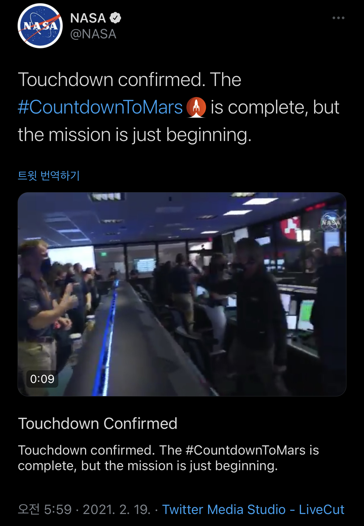 “Touchdown confirmed. The #CountdownToMars is complete, but the mission is just beginning. https://t.co/UvOyXQhhN9”