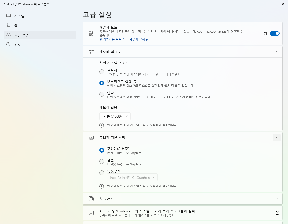 이 기능은 개발자에게는 스마트폰 없이도 앱을 테스트하고 디버깅할 수 있는 환경을 제공했고, 일반 사용자에게도 모바일 앱과 PC 간의 경계를 허무는 새로운 가능성을 보여주었습니다. 하지만 아쉽게도 마이크로소프트는 2025년 3월을 끝으로 WSA 지원을 공식 종료했습니다. 짧지만 강렬했던 이 기능은 많은 기대를 받았지만, 다양한 제약과 생태계의 제한으로 인해 널리 퍼지지는 못했습니다. 기술적인 시도는 인상적이었지만, 결국 유지의 어려움으로 서비스 종료라는 선택을 하게 된 점은 아쉬움을 남깁니다.